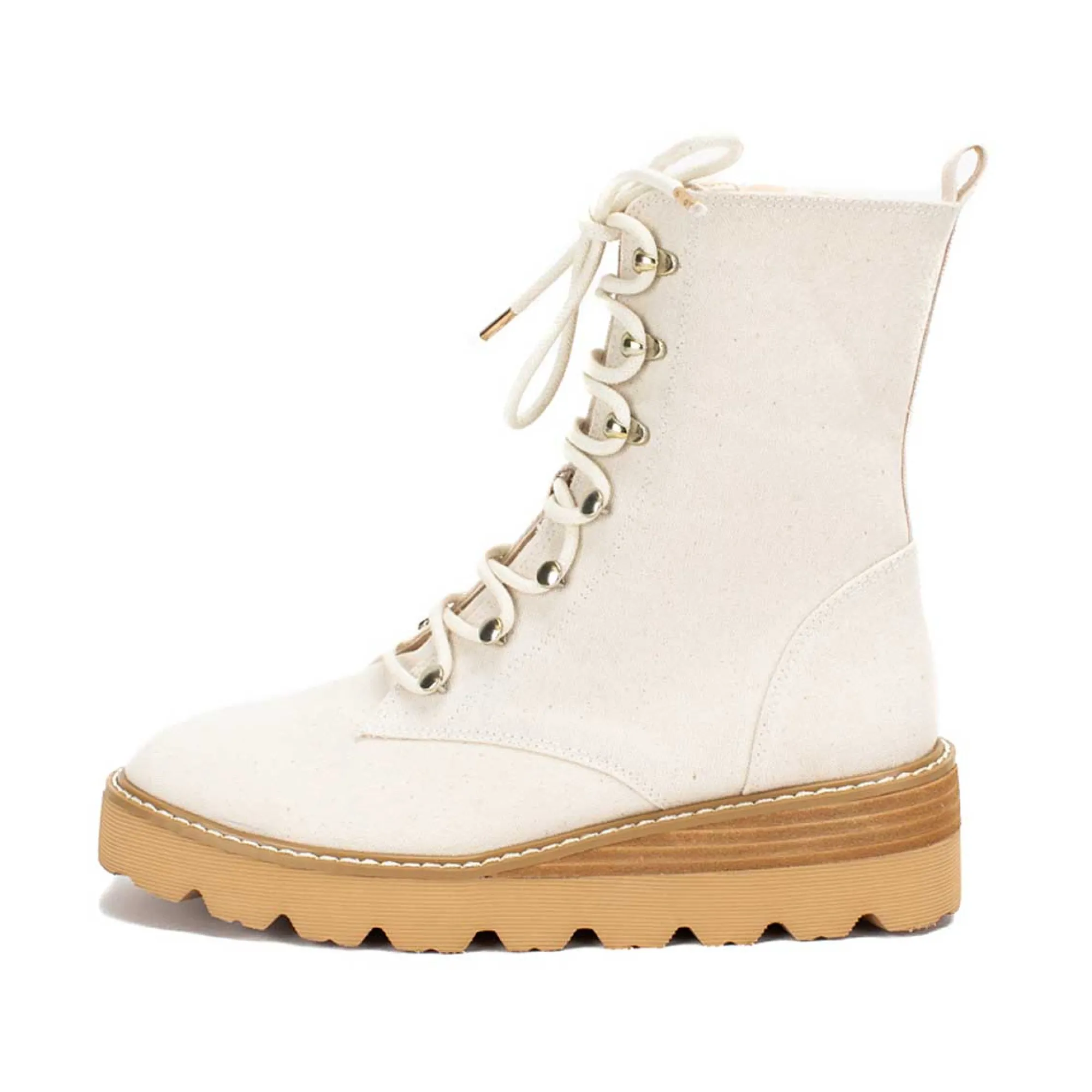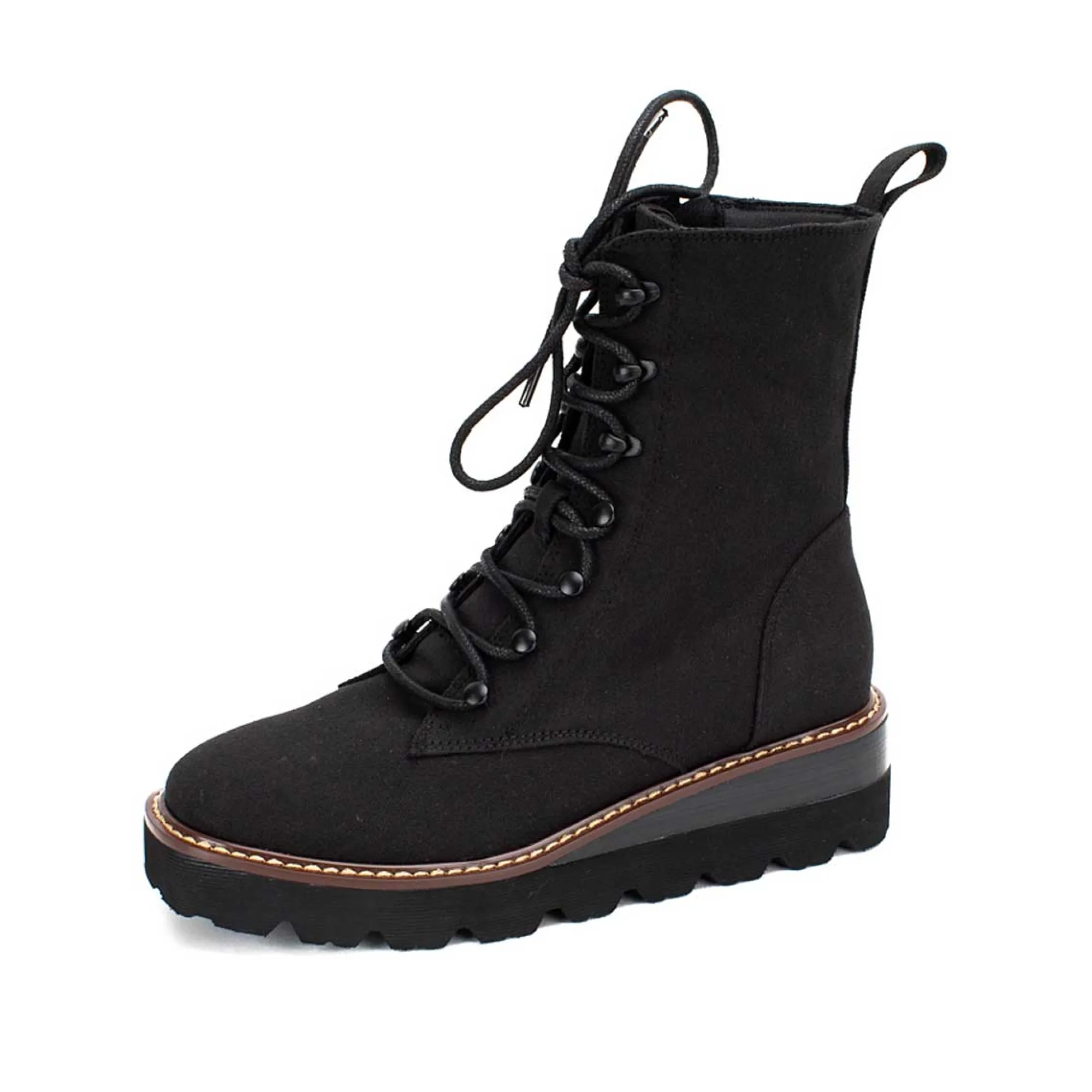 The Inez Lace-Up Boots Have Future-Favorites Written All Over Them! These Classic Military-Inspired Boots Have A Fabric Upper, And Side Zipper For Easy On And Off. Finished With A Trend-Right Chunky Sole And Exposed Stitching. The Padded Sole Makes It Perfect For All Day Wear.