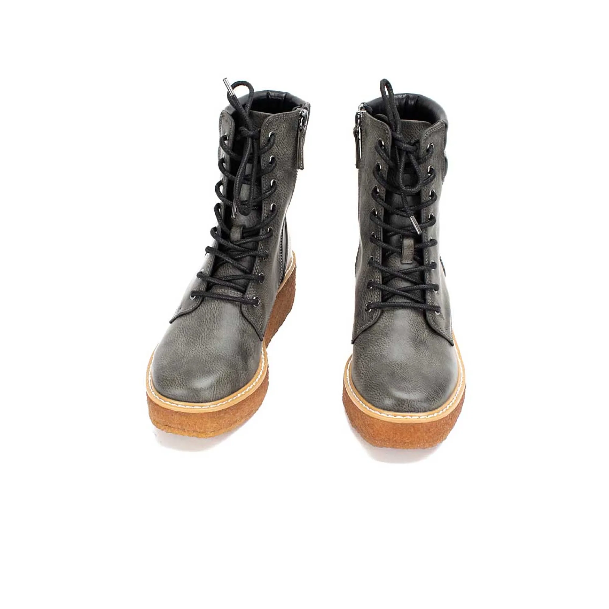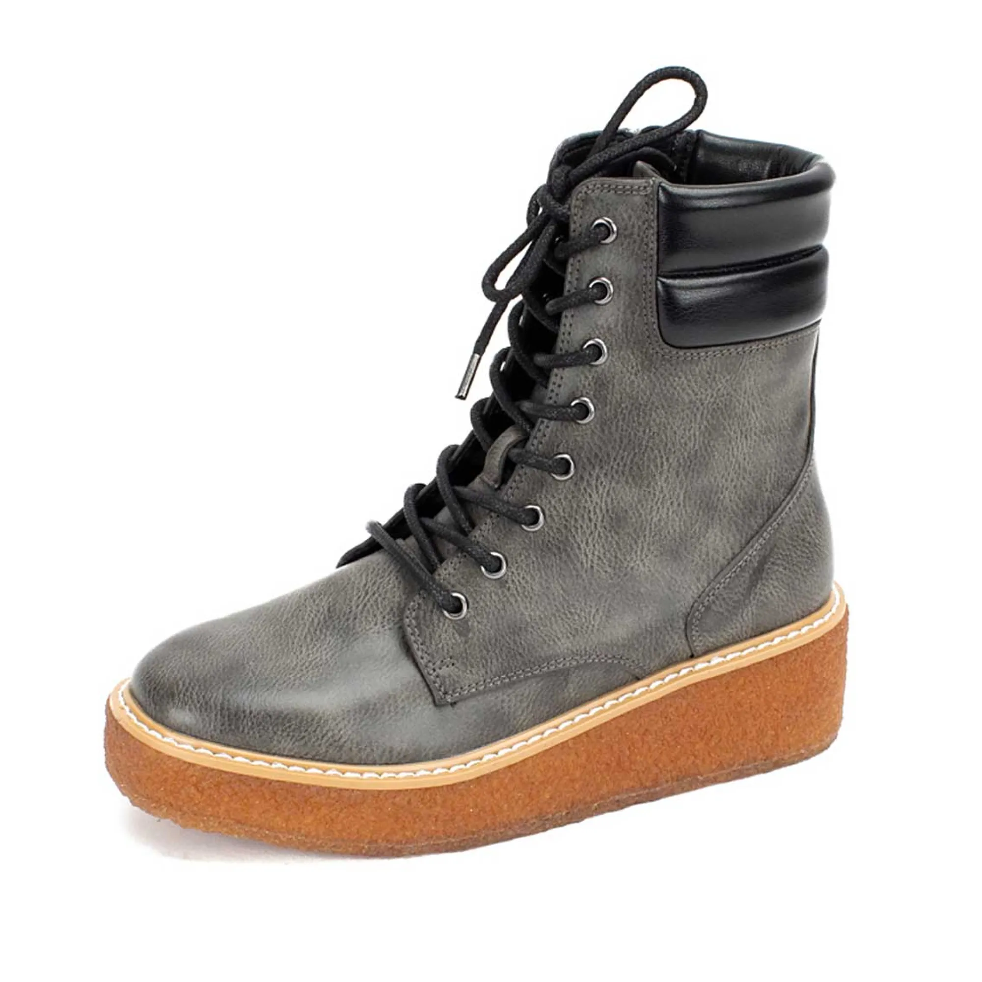 The Izette Lace-Up Boots Are Ready For Your Next Adventure! These Mid-High Boots Have A Faux Leather Upper, Padded Sole, Wrapped Crepe Wedge With White Stitching, And Side Zipper For Easy On And Off. These Stand-Out Hiking Boots Combine Both Versatility And Fashionable Style All In One.