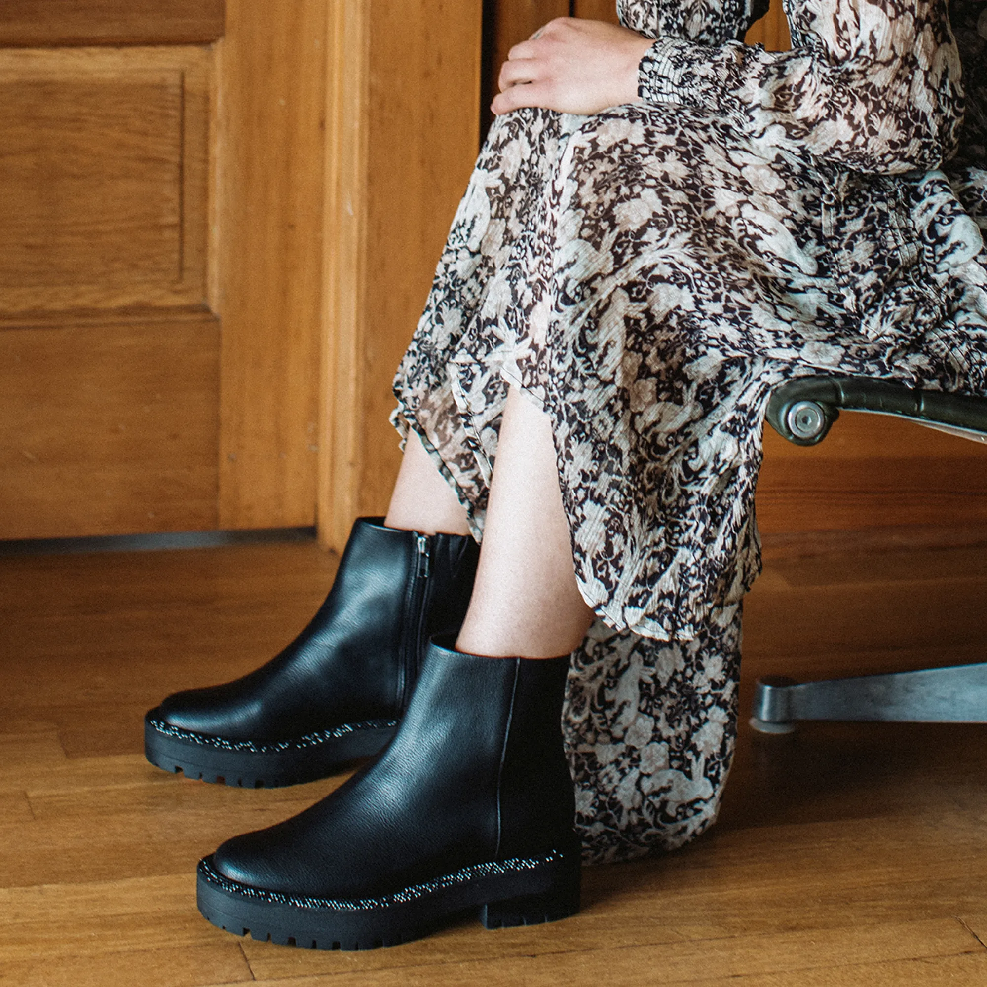 Susie Is A Minimalist Combat Boot Embellished With Tonal Rhinestones Along The Outsole For A Bit Of Feminine Flair. The Inside Zipper And Hidden Elastic Help Ensure Comfortable And Flexible Movement Throughout Your Day With These Beauties On Your Feet.