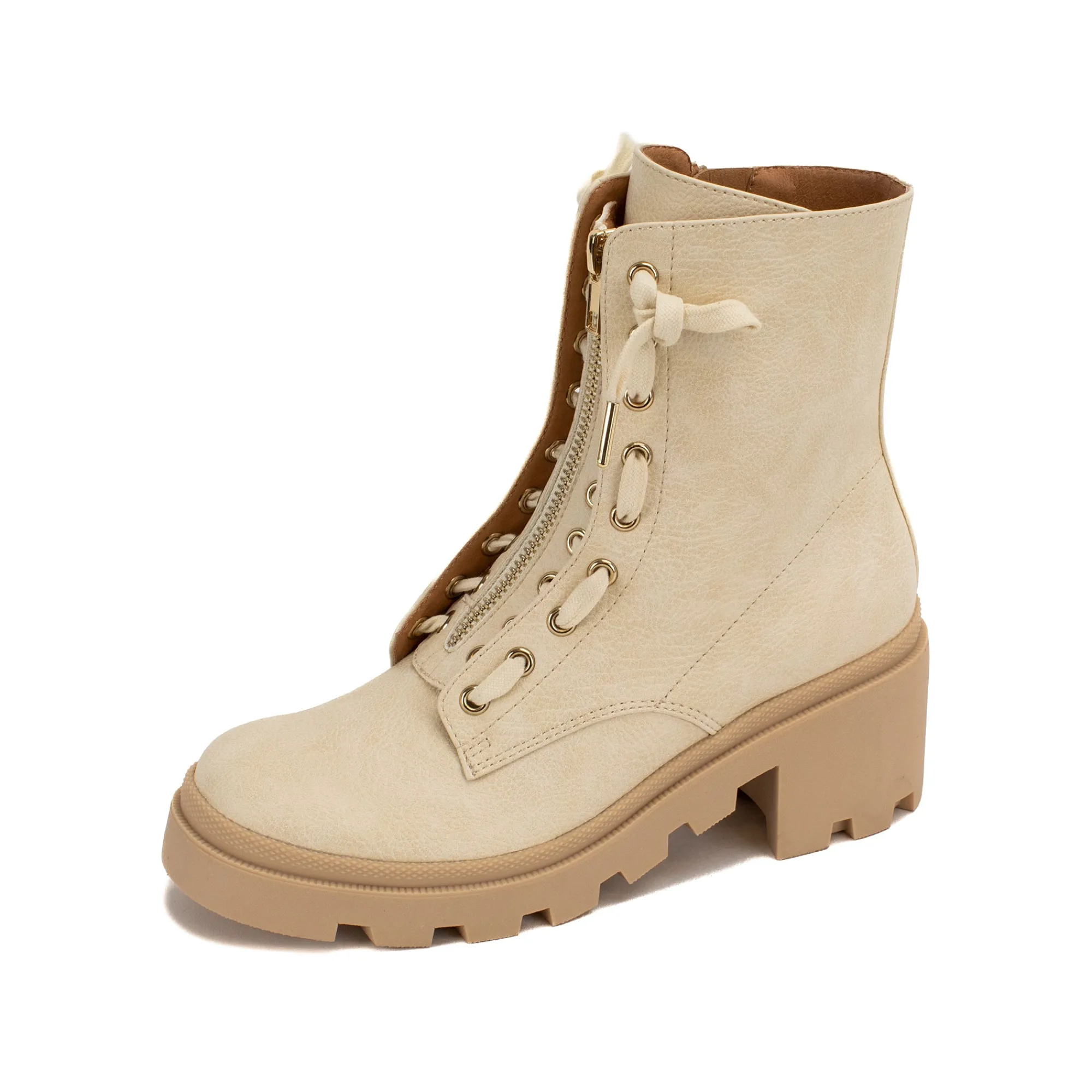Conquer Any Terrain Confidently In Our Thea Ankle Boots. Crafted From Tumbled Faux Leather, With Intricate Fixed Laces, And A Front Zipper For A Secure, Comfortable Fit That Allows For Quick And Easy Wear. This Medium-Heeled Boot Is Finished With A Lugged Tread Sole For A Hint Of Edgy Sophistication.