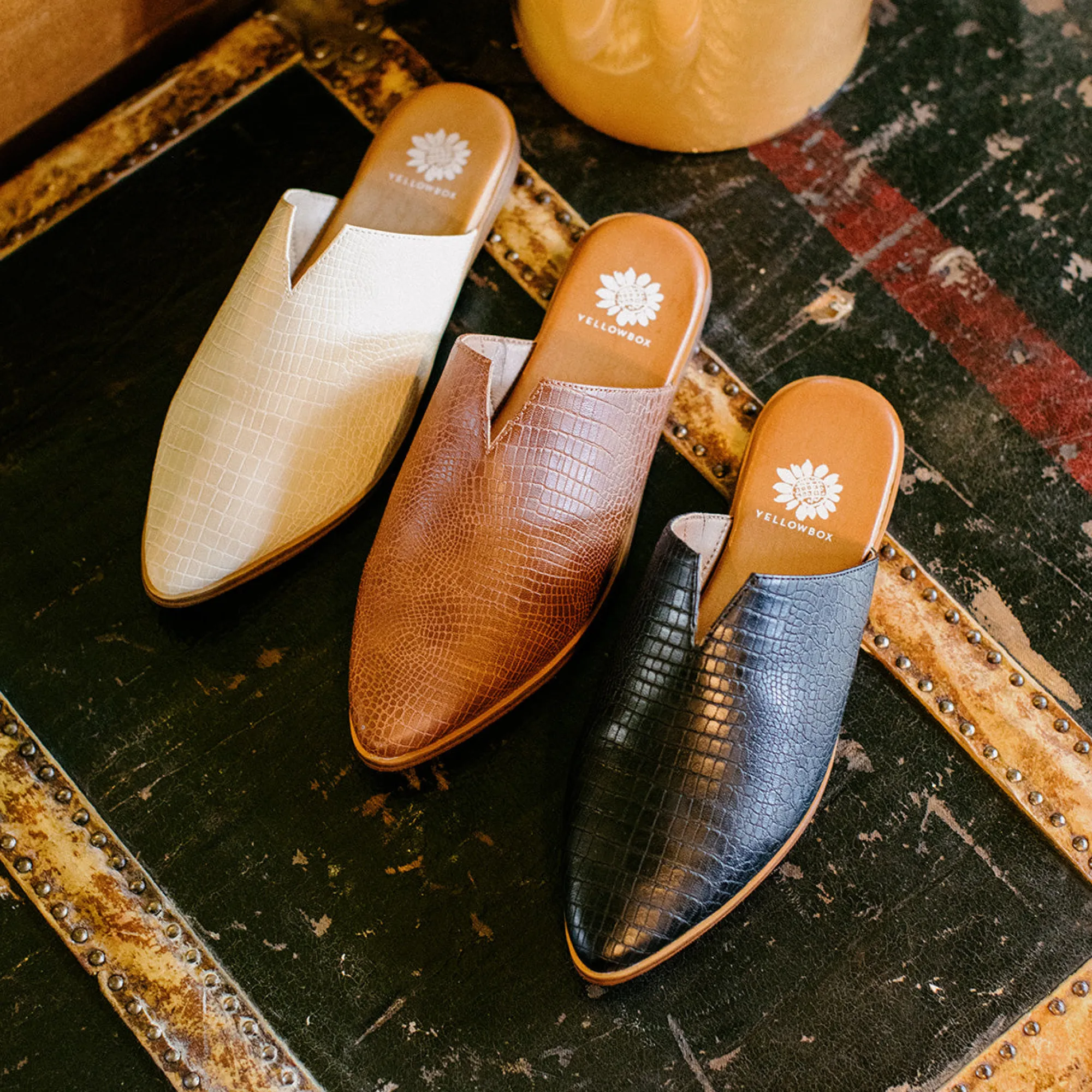 Stay Casual In Modern Western Mules With A Textured Croco Upper.