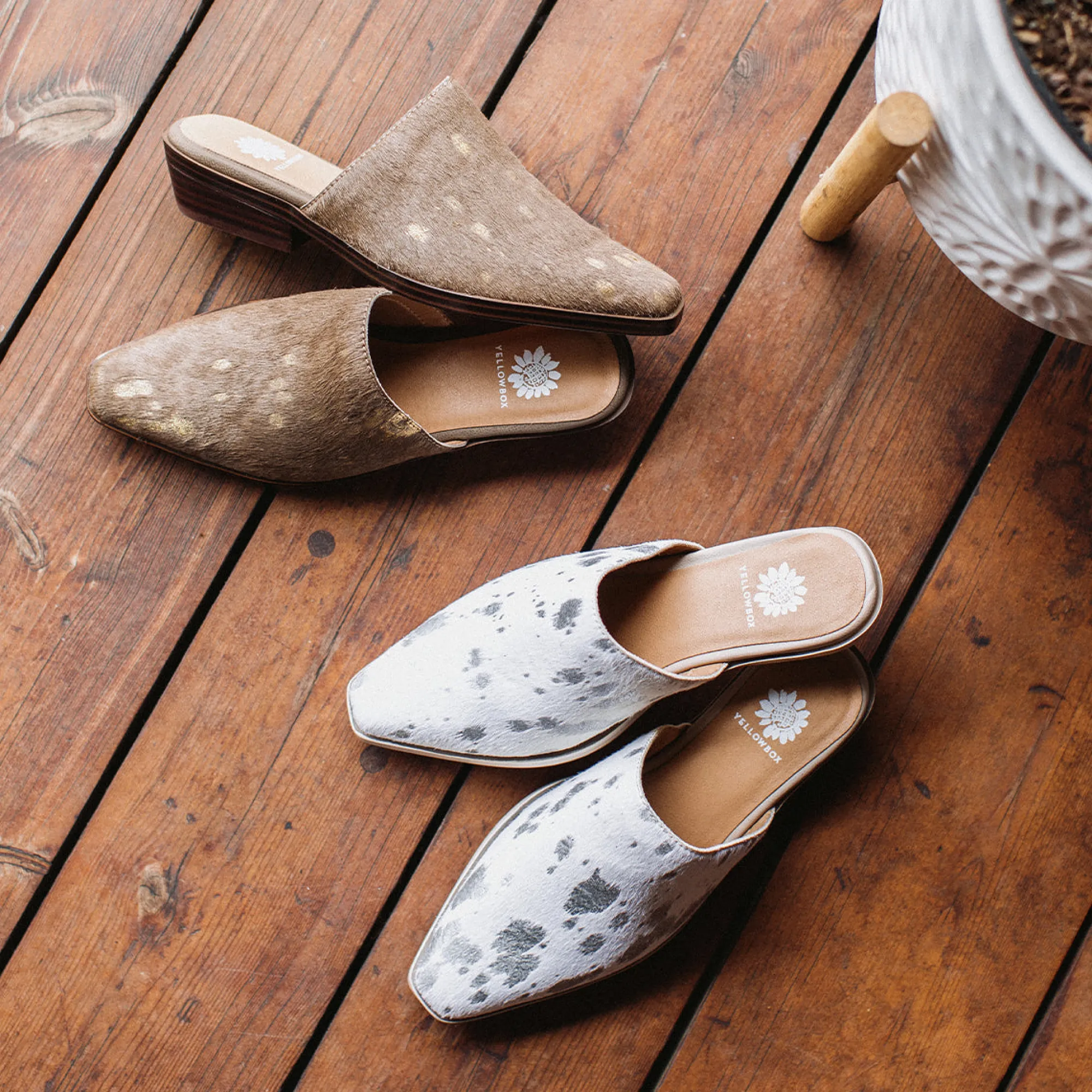 Turn Heads Wherever You Go In Our Warden Mules. Featuring A Genuine Leather Vamp With A Metallic Cow-Print Design, These Low-Heeled Mules Provide Both Comfort And Style. Add A Touch Of Sophistication To Any Outfit With These Easy-To-Wear, Stylish Mules.