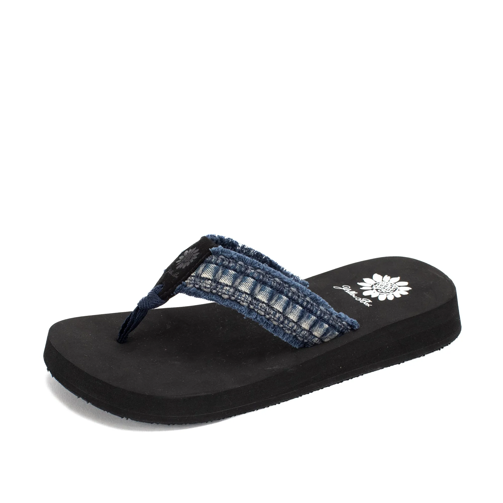 Handcrafted And Woven Fabric Trims With Frayed Raw Edges Make This Washed Denim Material Strap Extra Unique Up-Close.