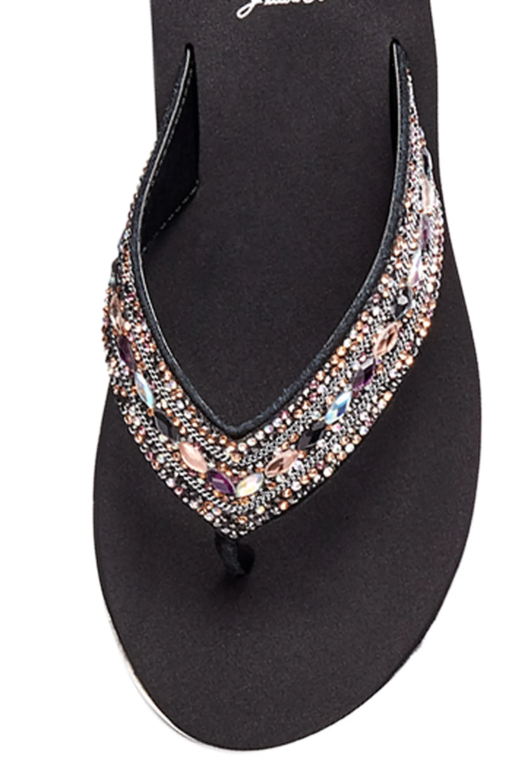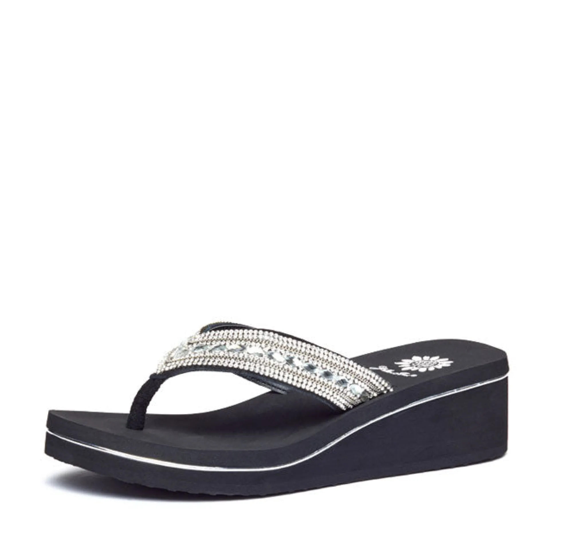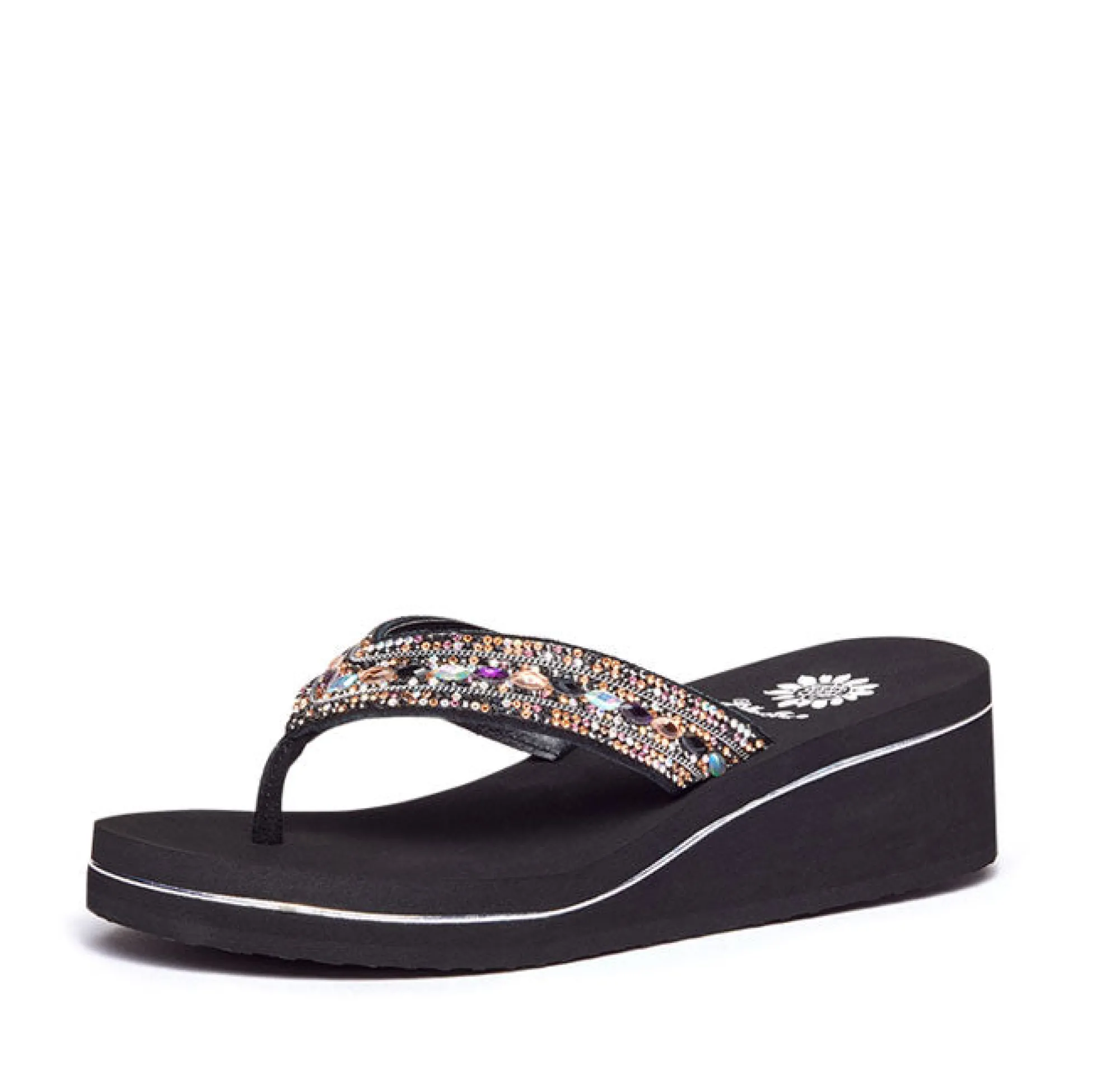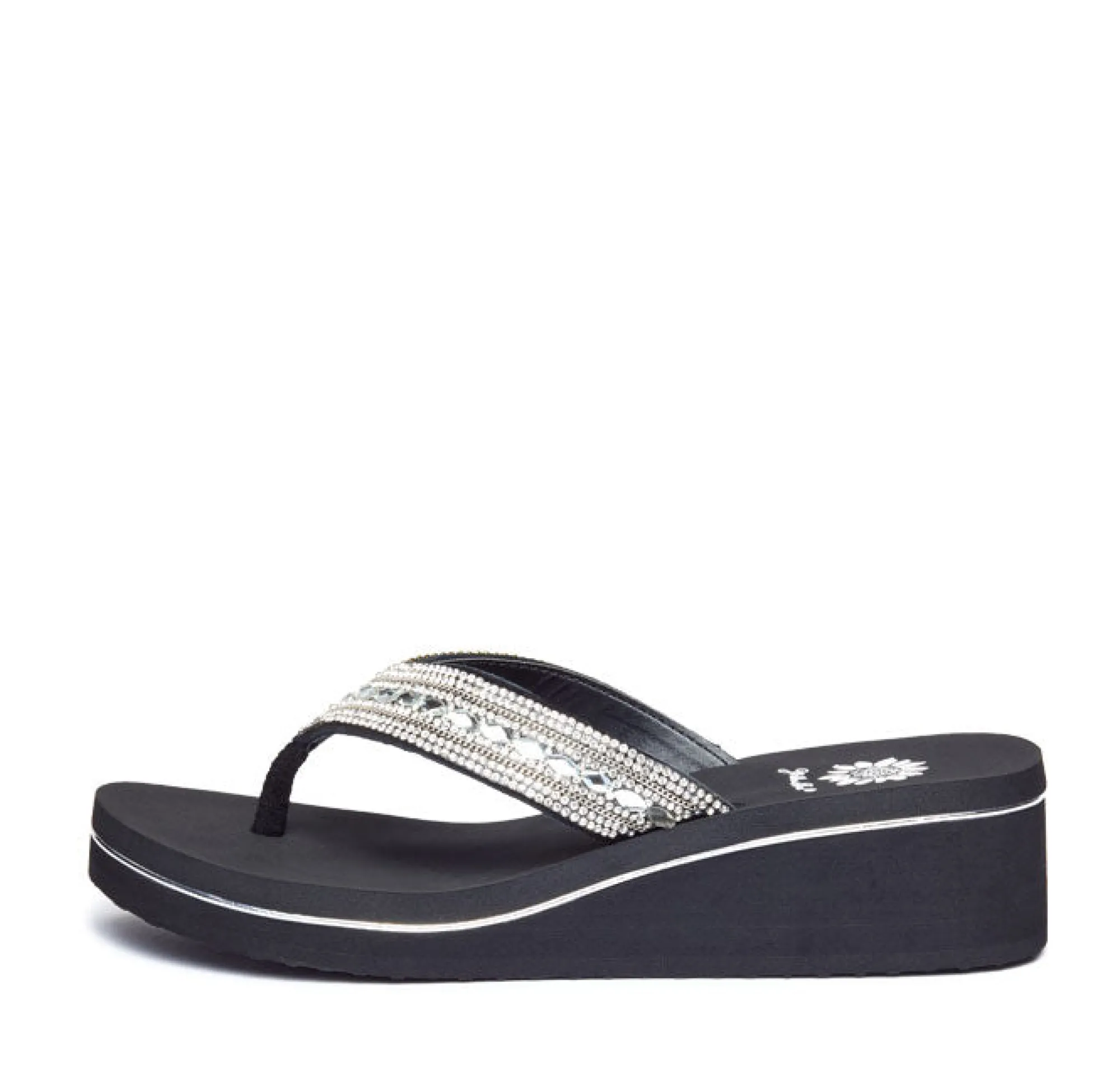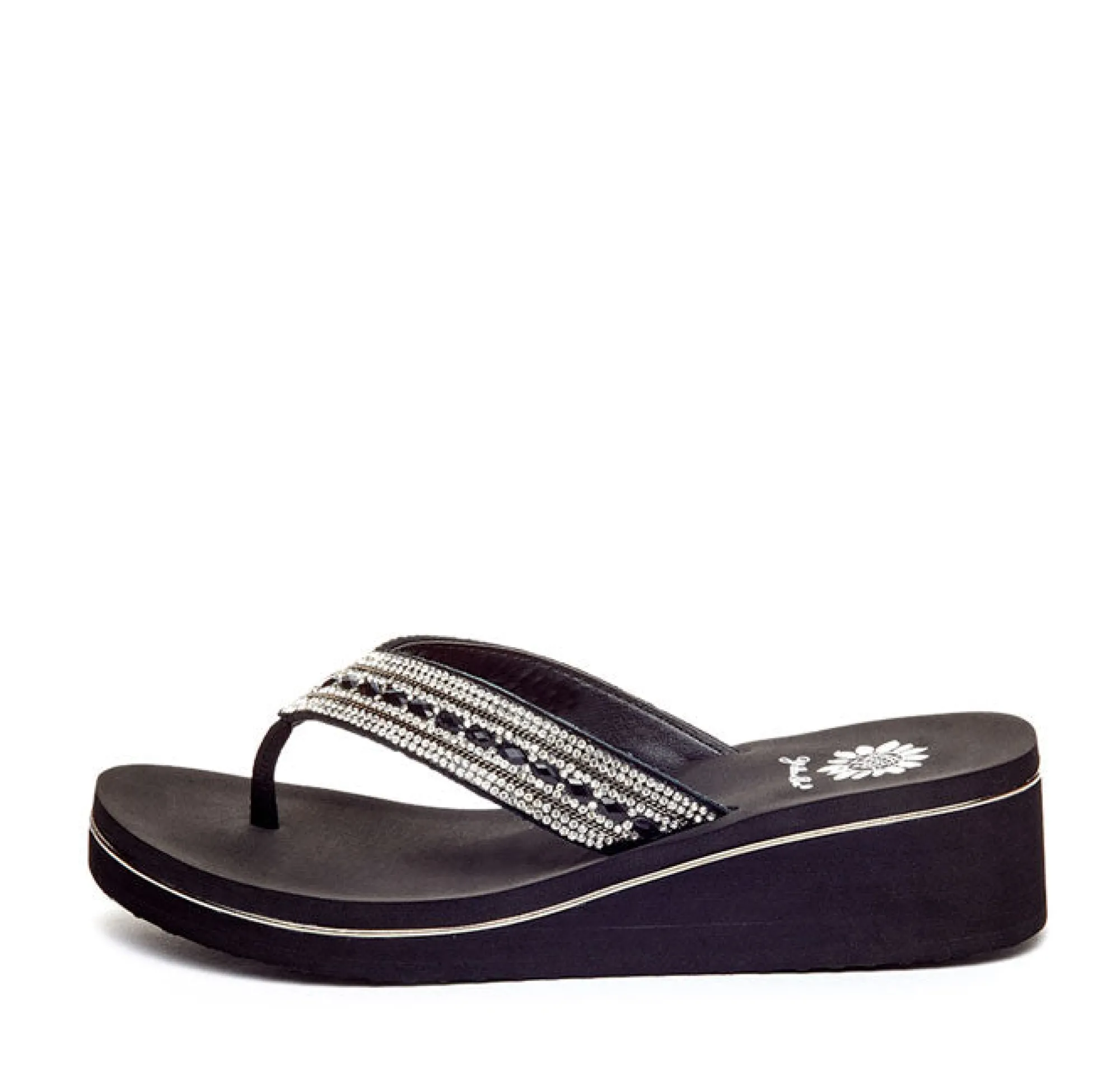 Features Iridescent Rhinestones And A Metallic Stripe Inset Around The Outsole. The Hi-Rebound, Soft And Comfortable Eva Foam Footbed Gives Your Feet Much-Needed Support.