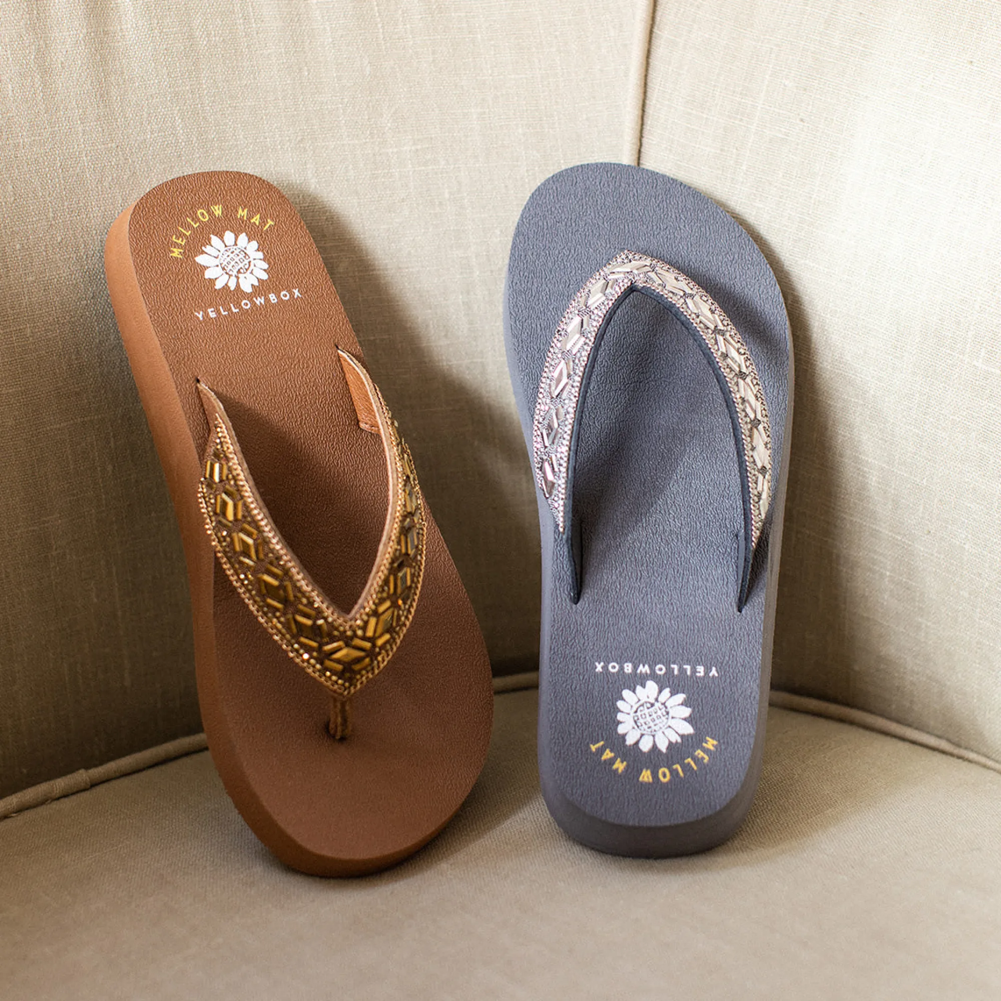 The Nayeli Flip-Flop Features An Embellished Heatset Rhinestone Upper On Top Of Our Famously Comfortable Mellow Mat™ Footbed, Ready To Take You For A Walk On The Wild Side.