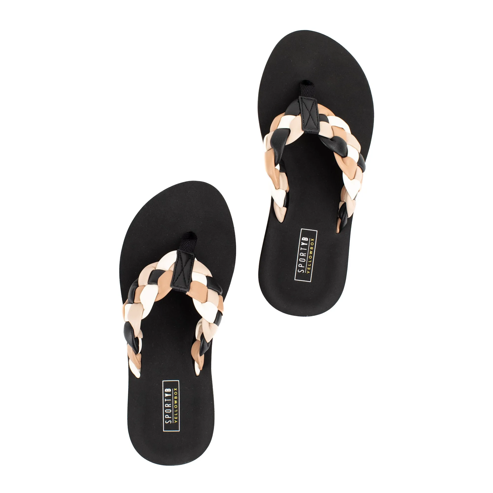 The Braid Trend Takes A Beachy Look With Multicolor Plaits On A Casual Contoured Flip-Flop Style.