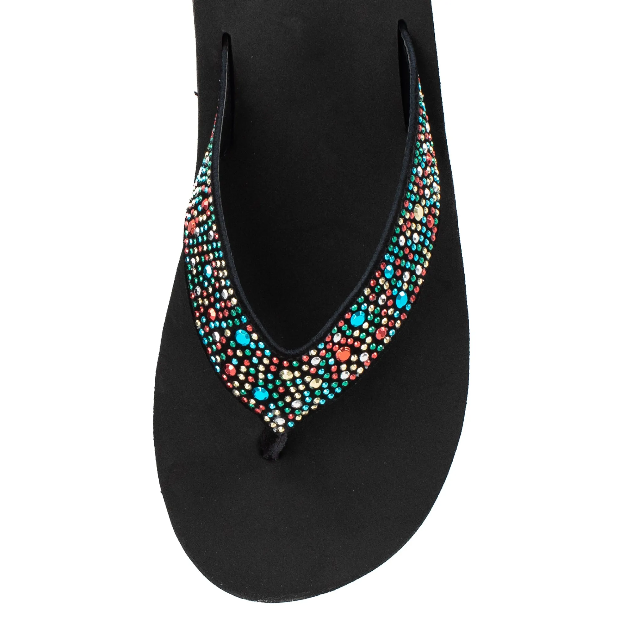 Go Wild As You Put On Africa Sandals In Multi, Colorfully Decorated With Blinking, Winking, Bedazzling Studs.