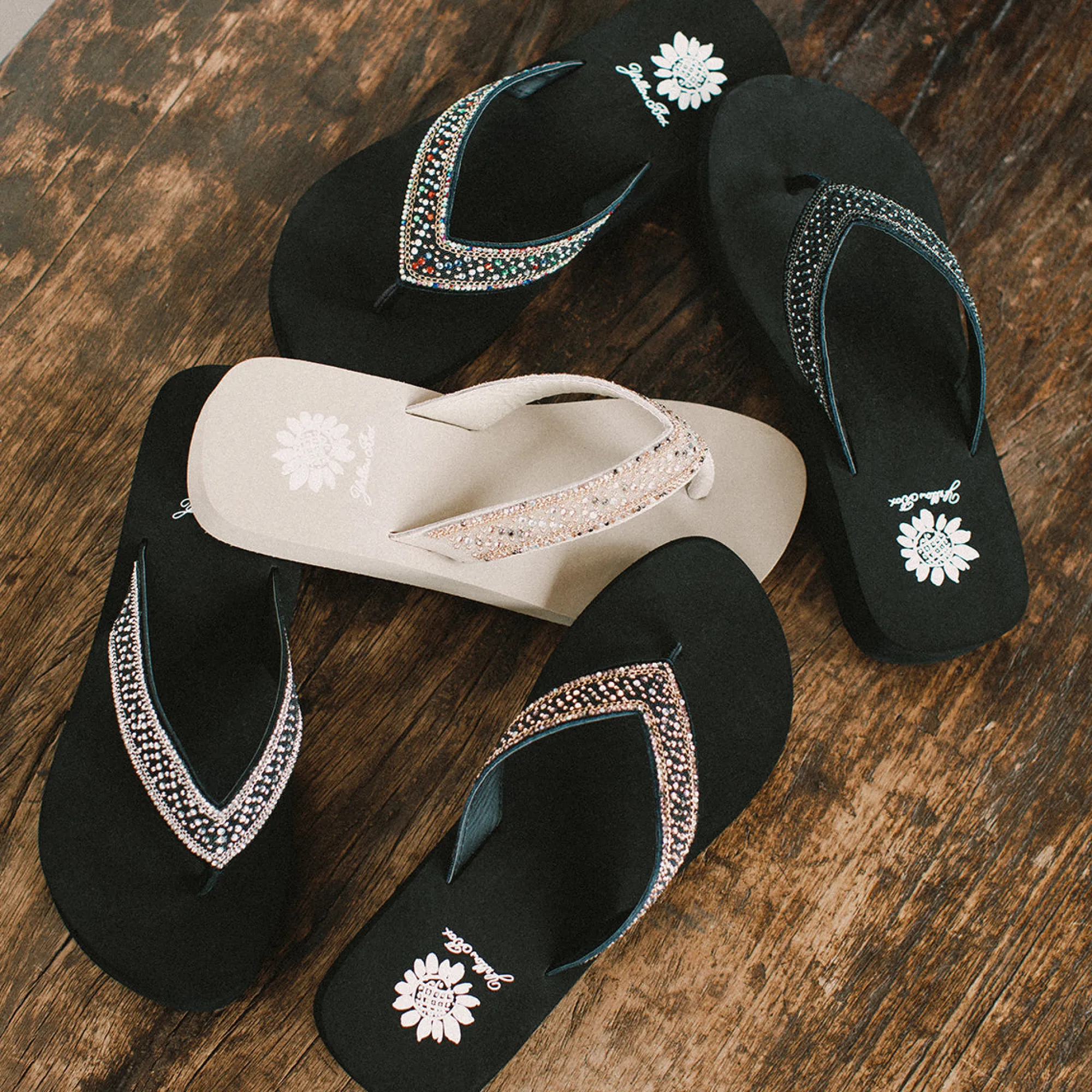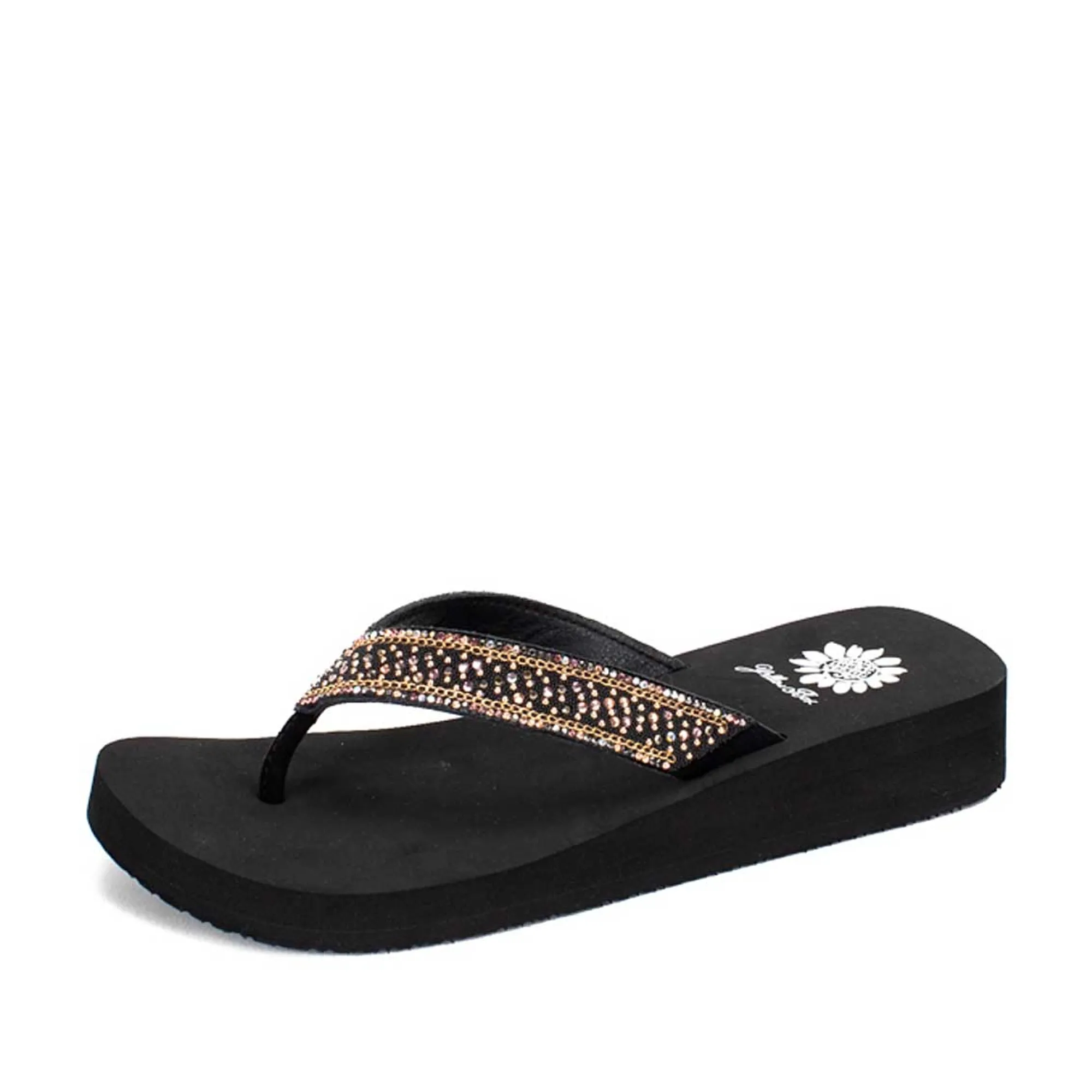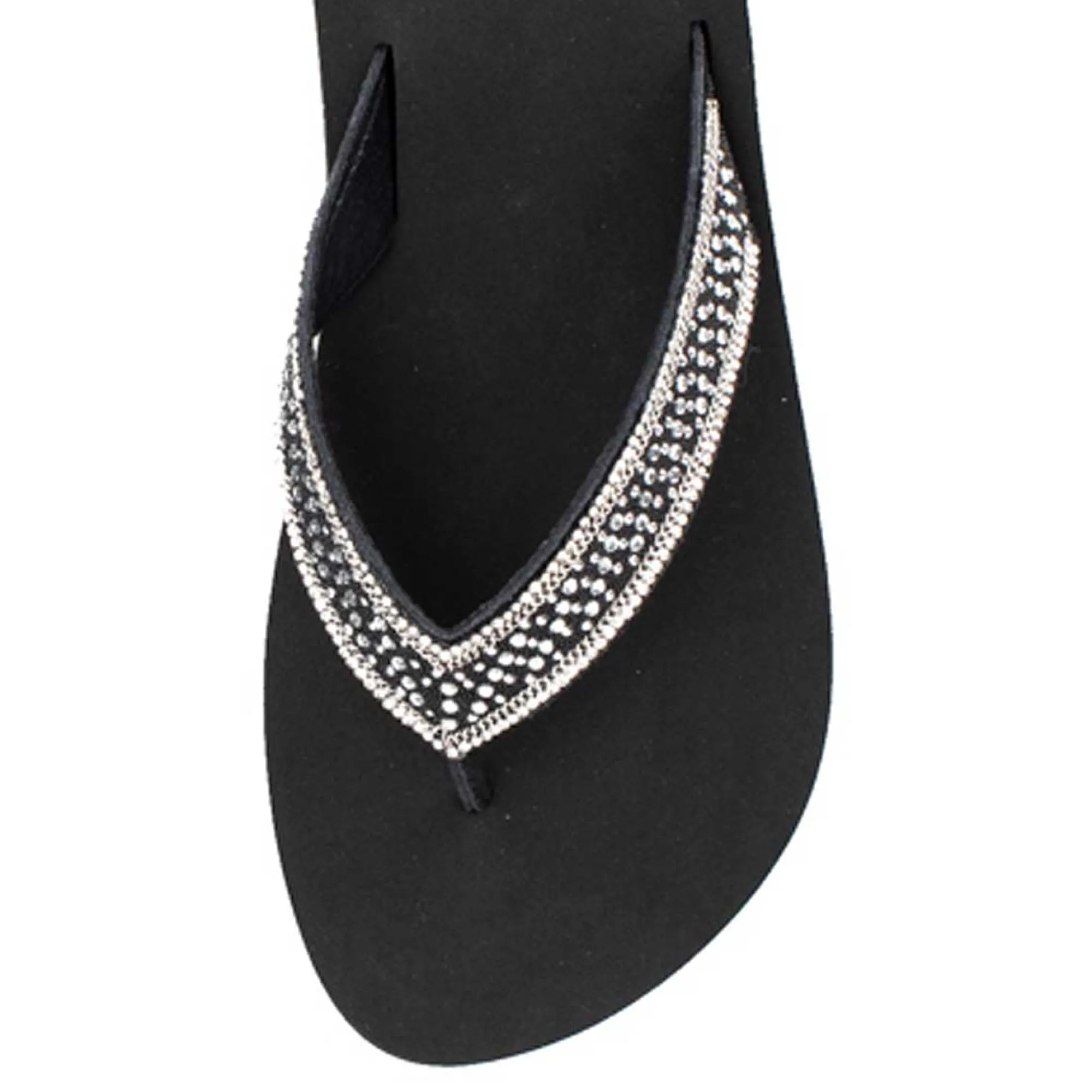 Sparkling Rhinestones, Chain Details, And Stud Embellishments Transform This Easy Flip-Flop Into A Chic Statement Maker. It’s Sure To Be A Fast Favorite!