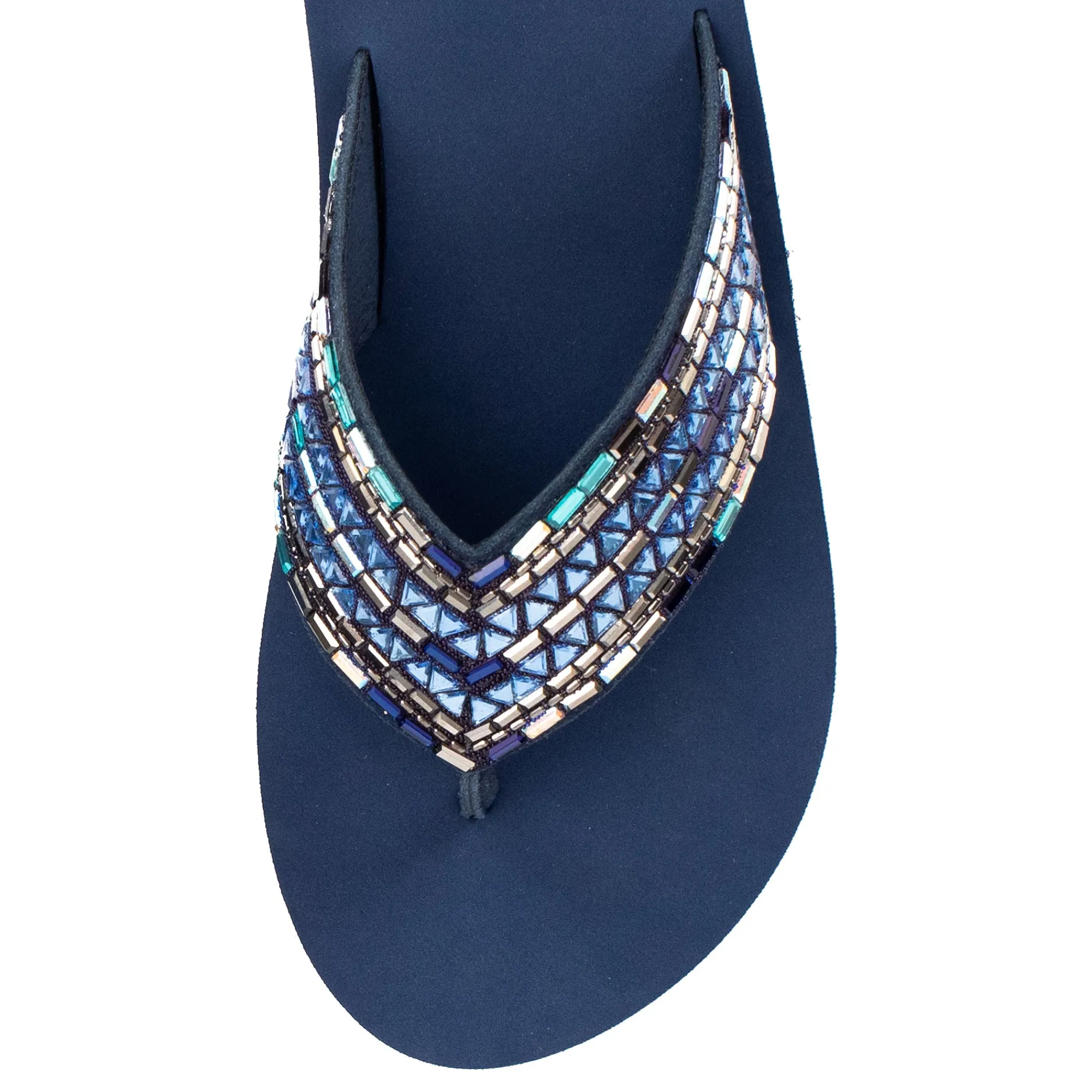 Sparkle With Every Step In The Steeven Mini Wedge Flip Flop Sandal. Featuring A Faux Leather Upper, A Padded Footbed, And Tesselated Triangle Embellishments Glittering All The Way Across The Straps. An Easy Pick For Your What-To-Wear Worries.