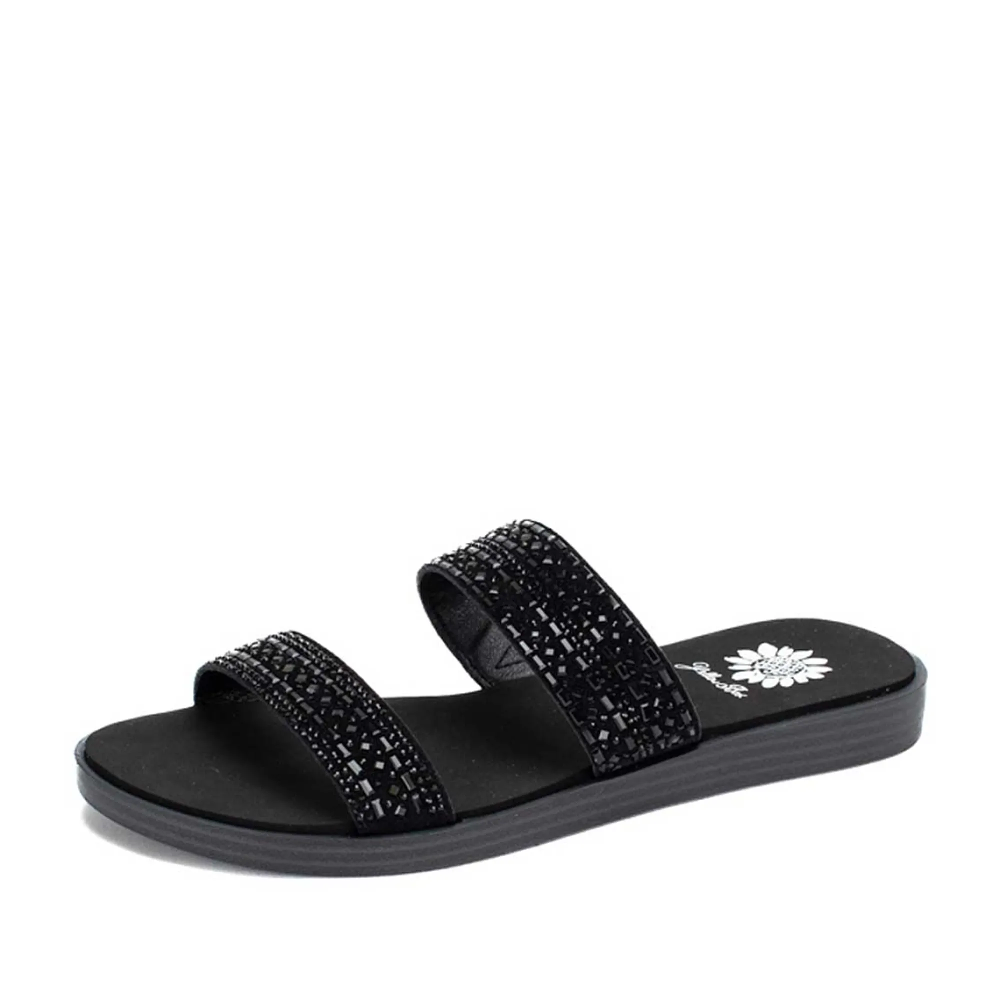 Shimmer As You Step With The Delfie Slip-On Sandals. These Easy Slide Sandals Have A Comfortable Padded Footbed, And Are Adorned With Geo-Shaped Rhinestones For Eye-Catching Style. These Double-Banded Sandals Look Great Paired With Dresses, Shorts, Or Jeans!