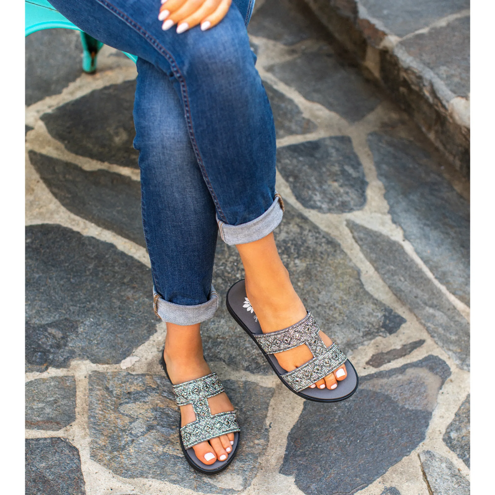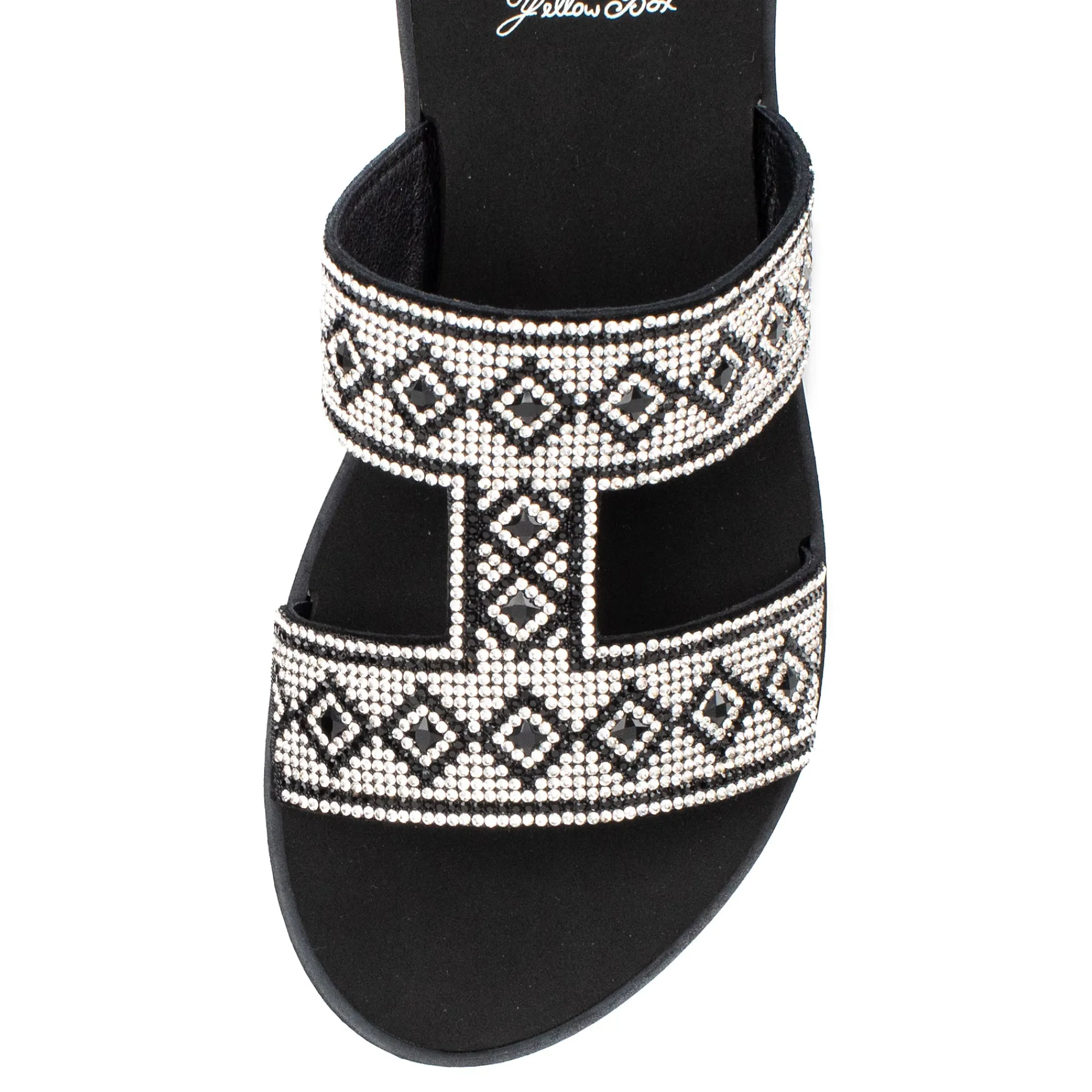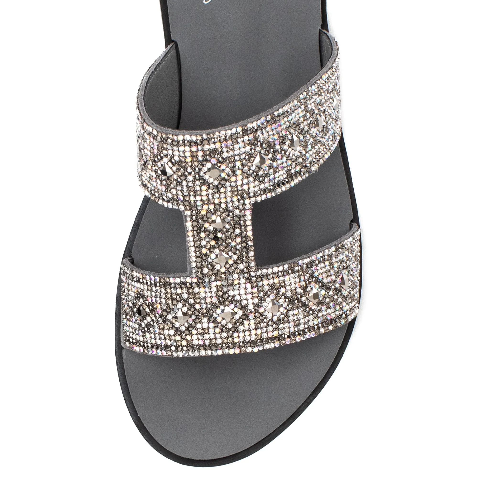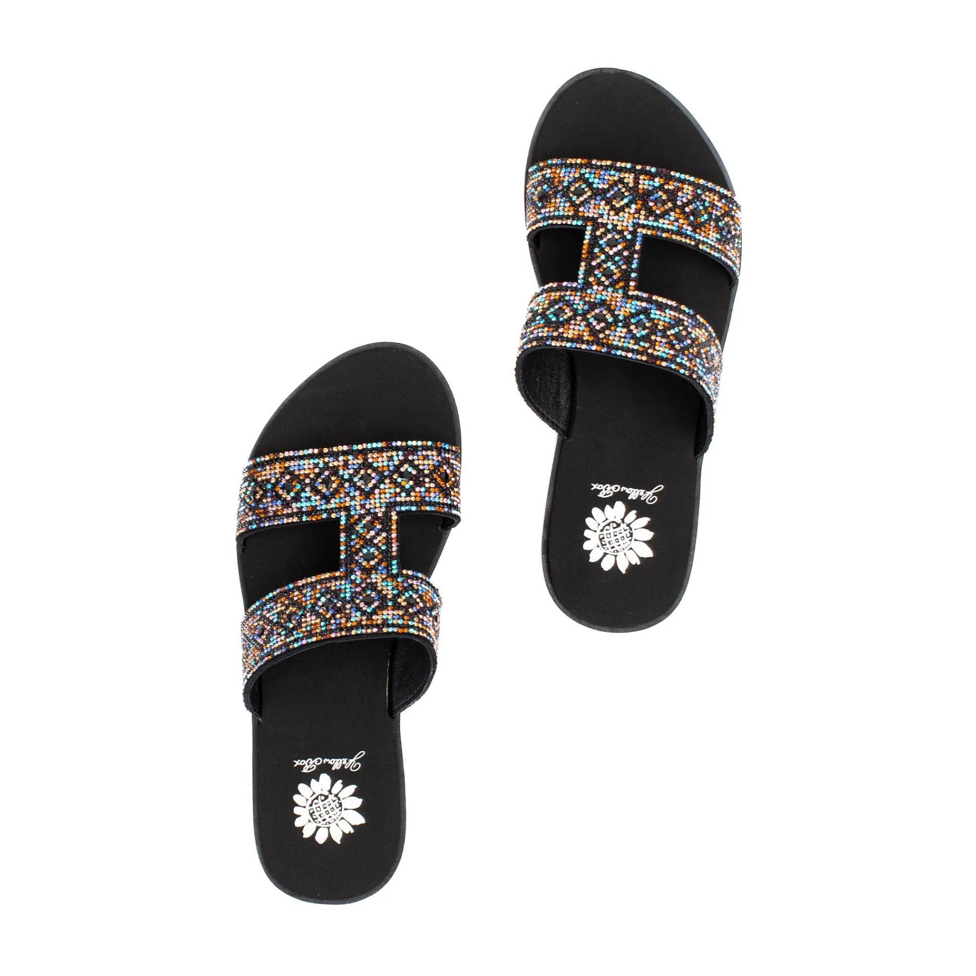 Up The Wattage And Shine In This H-Band Style Sandal Bedazzled With Multicolor Rhinestone Mixes.