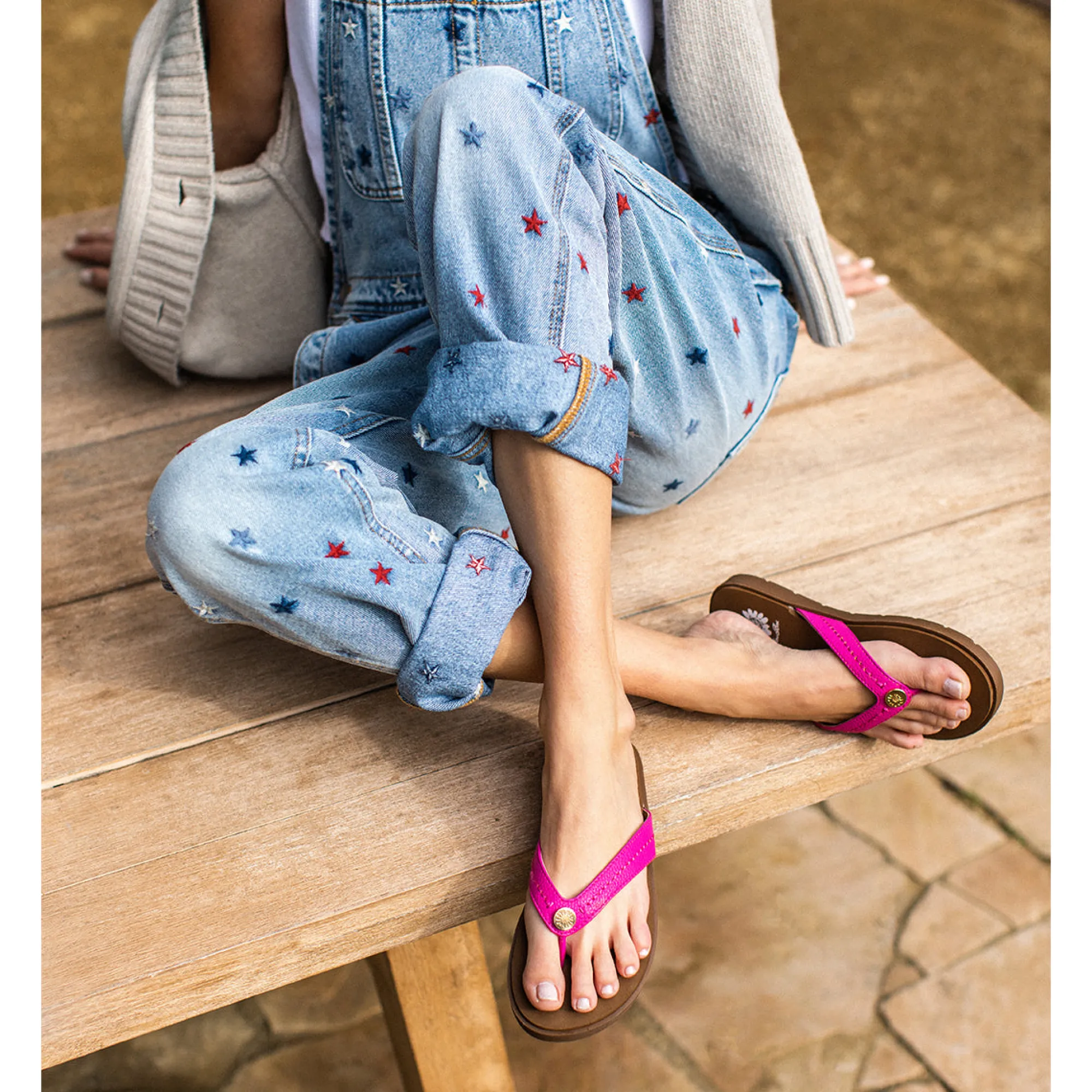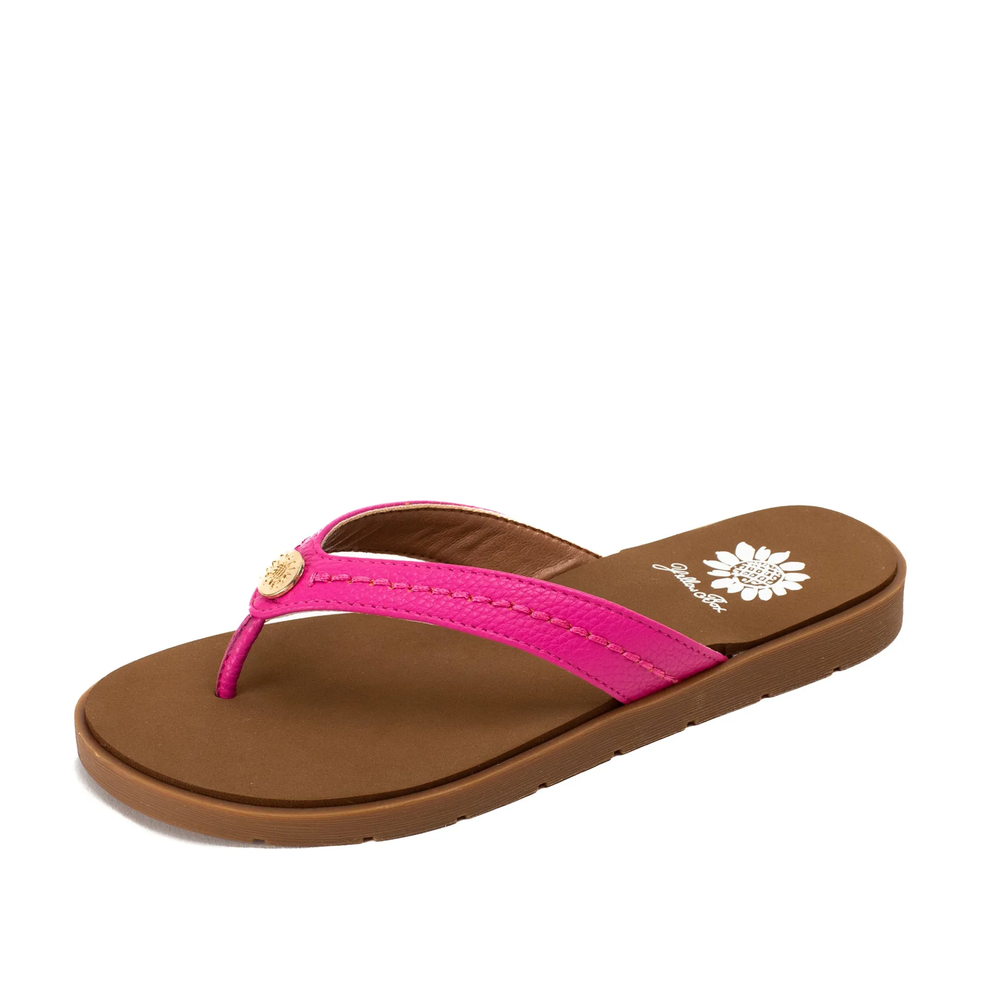 A True Classic – The Fallen Flip-Flop Sandals Feature A Luxe Tumble Grain Upper, A Butterfly Flared Strap Silhouette, With A Timless Metallic Logo Medallion At Center. The Bottom Features Our Signature Yellow Box Eva Footbed Inset In A Slip-Resistant Outsole.