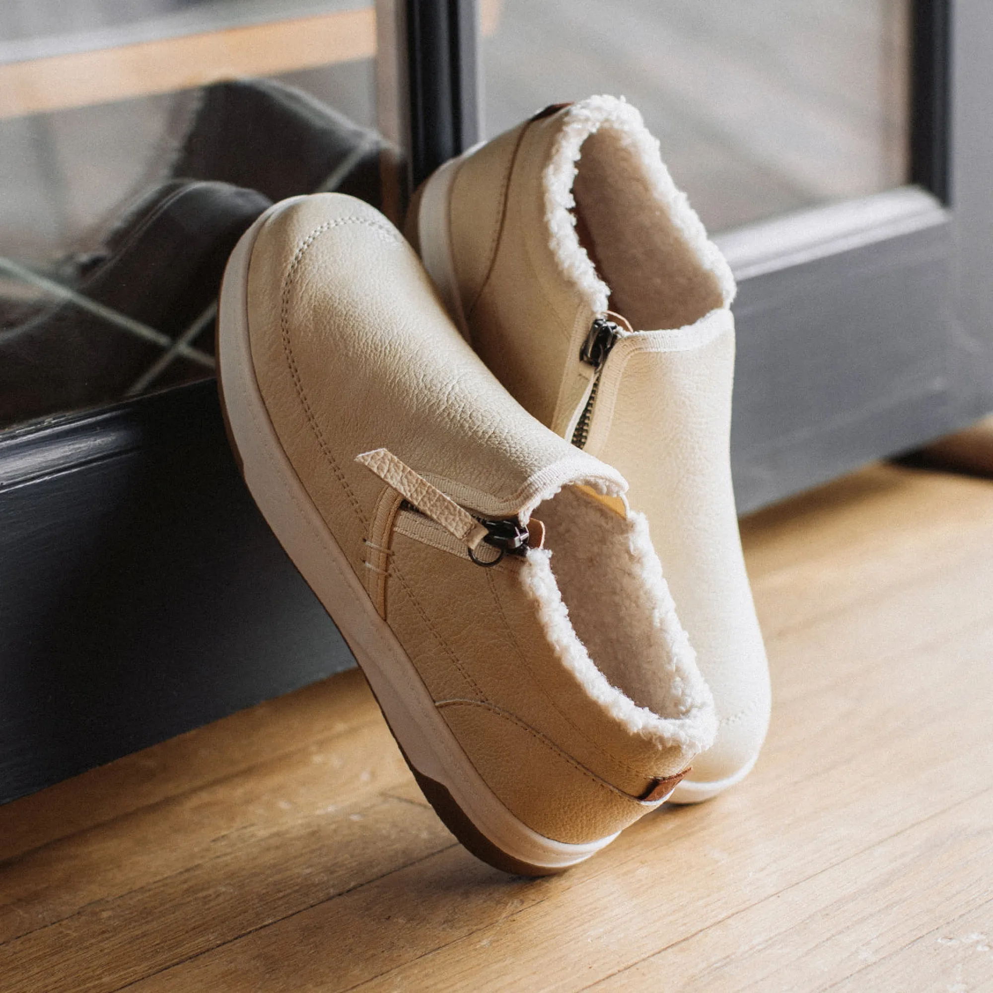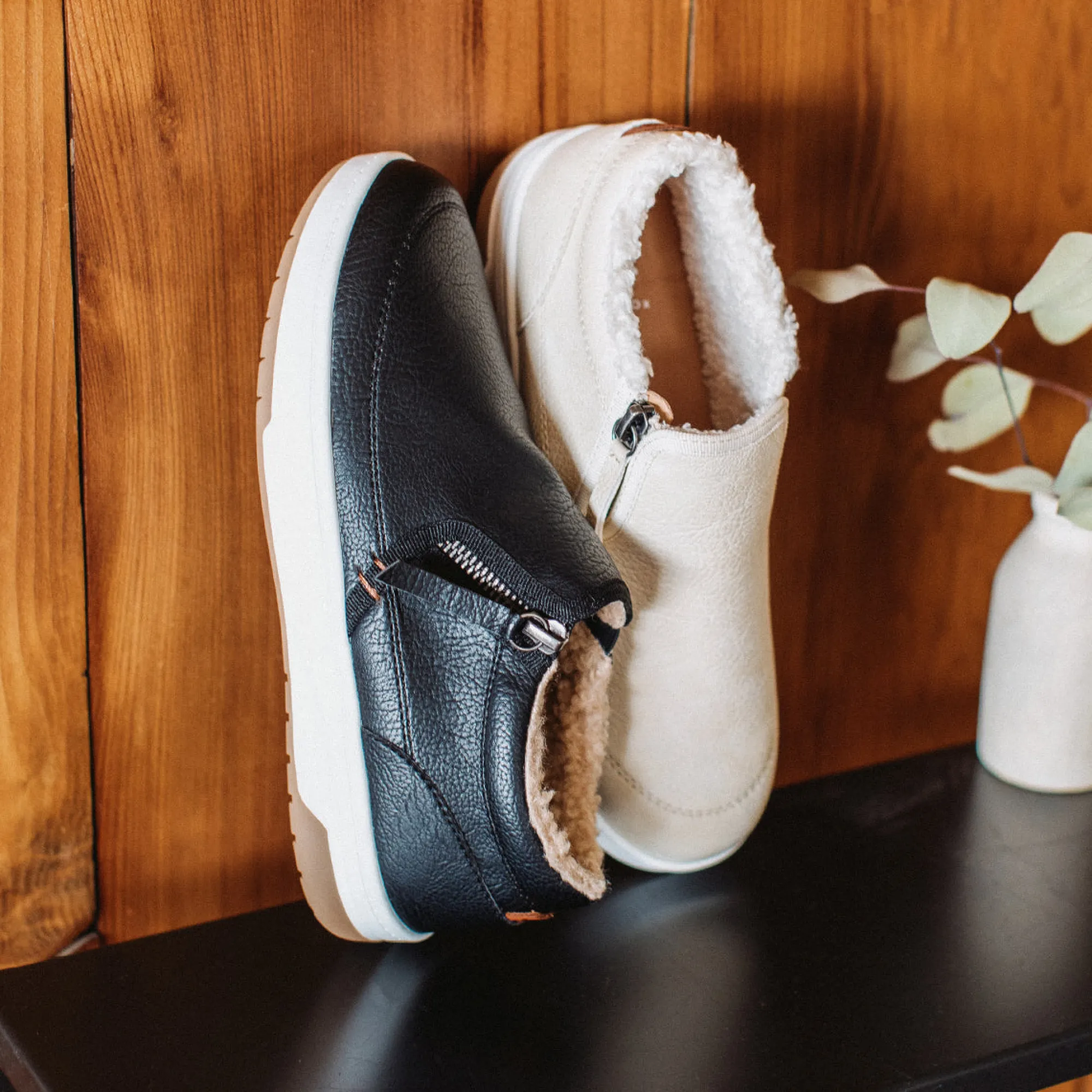 Meet Naomy, A Perfectly Clean-Cut, Sleek, And Convenient Sneaker. Featuring A Smooth Vamp With An Offset Side Zipper And Matching Pull Tab. Wear It As A Slip-On With The Inside Gore, Or Unzipped To Showcase The Faux Shearling Back Collar.