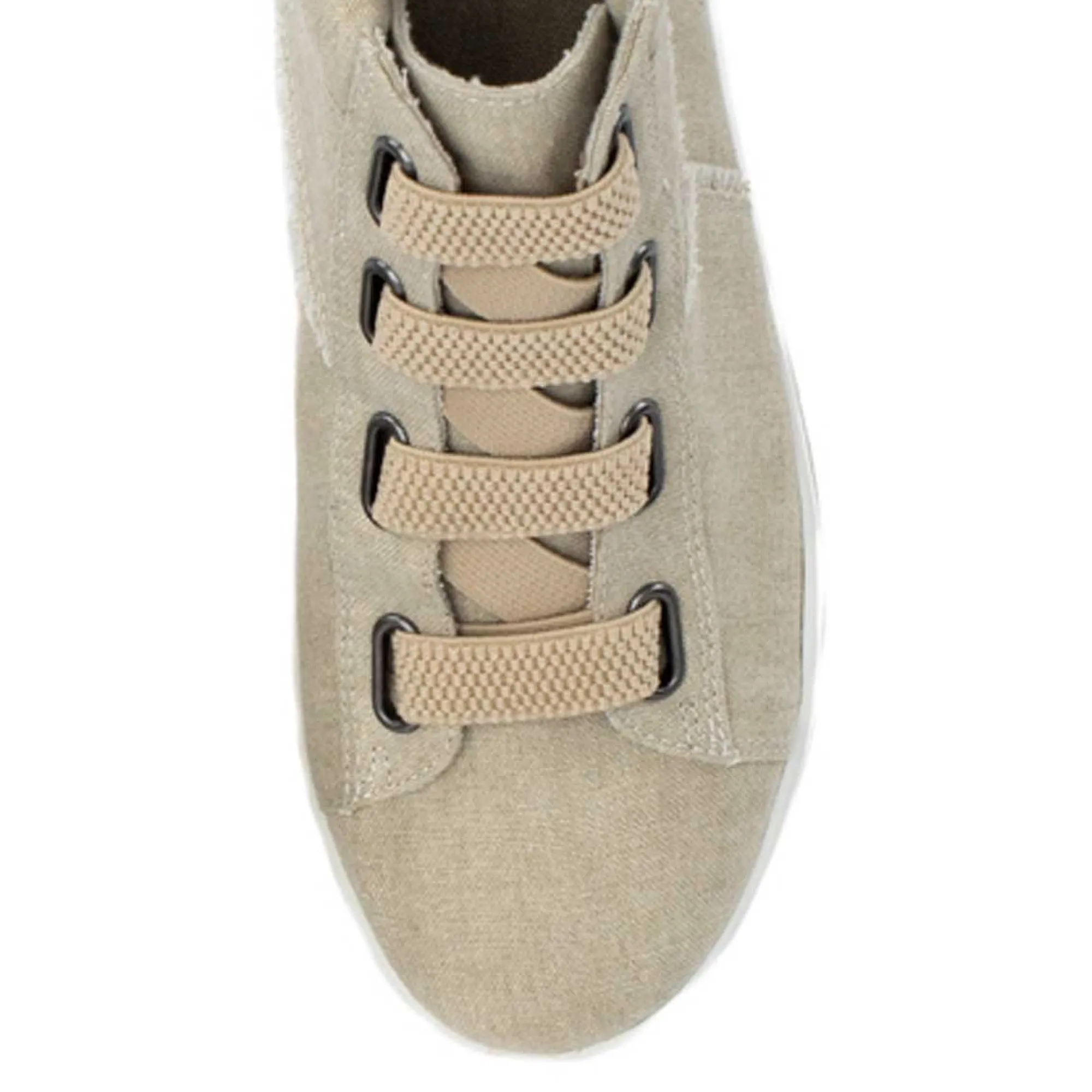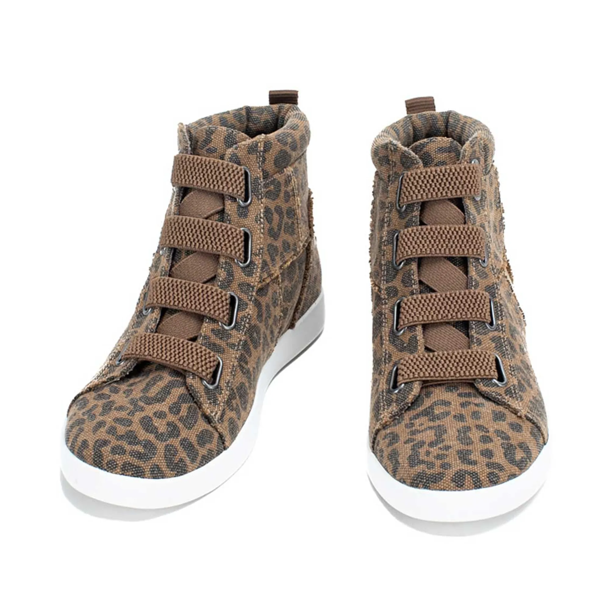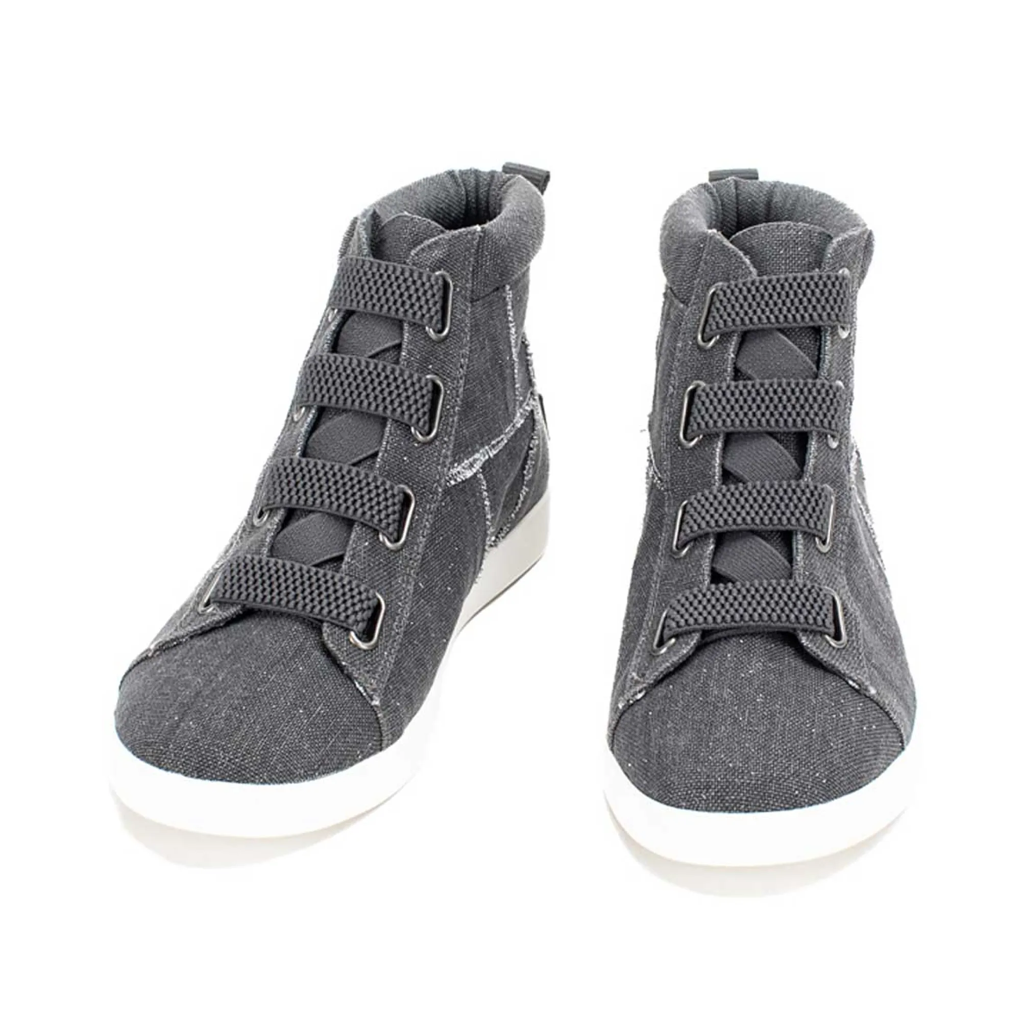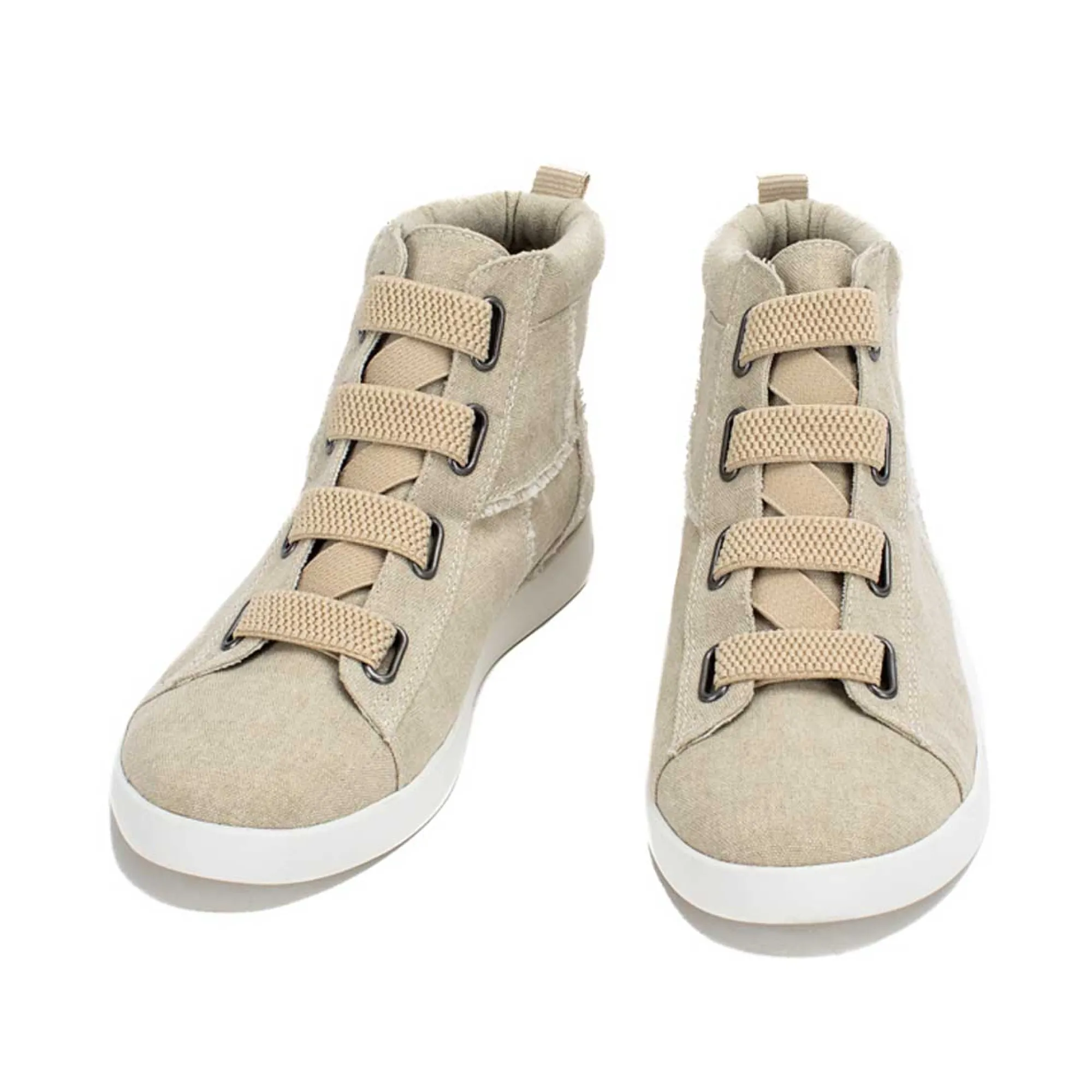 Ozzie High Top Sneakers Make Street Style Dressin’ Easy! No-Tie, Pull-On Elastic Makes Getting Out The Door A Cinch And The Distressed Canvas Paneling Makes You Look Casually High Effort.