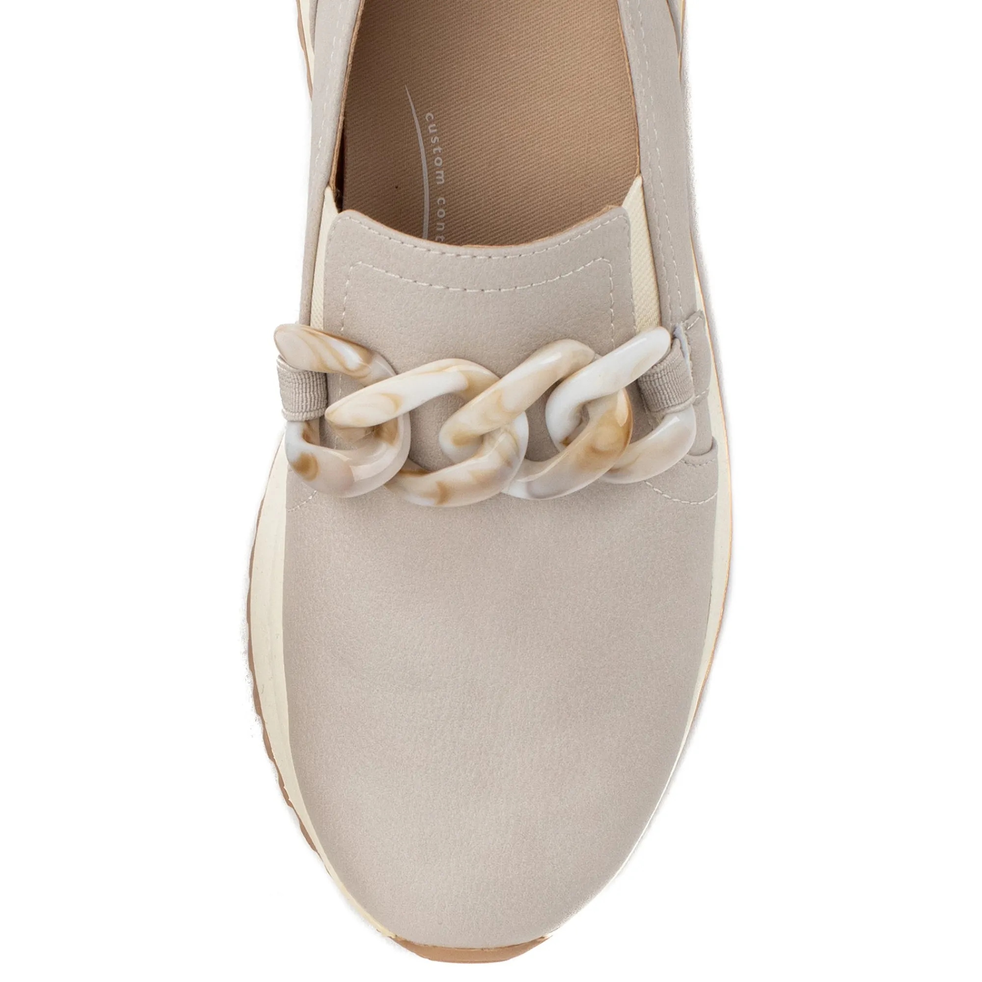 Meet Rory, A Sleek And Stylish Slip-On Loafer With A Trendy Trainer Outsole. The Playful Chunky Chain Hardware Helps Add A Touch Of Whimsy To Any Athleisure Ensemble. Embrace The Comfort And Versatility Of A Padded Insole That Can Be Removed For Added Convenience And Customization.